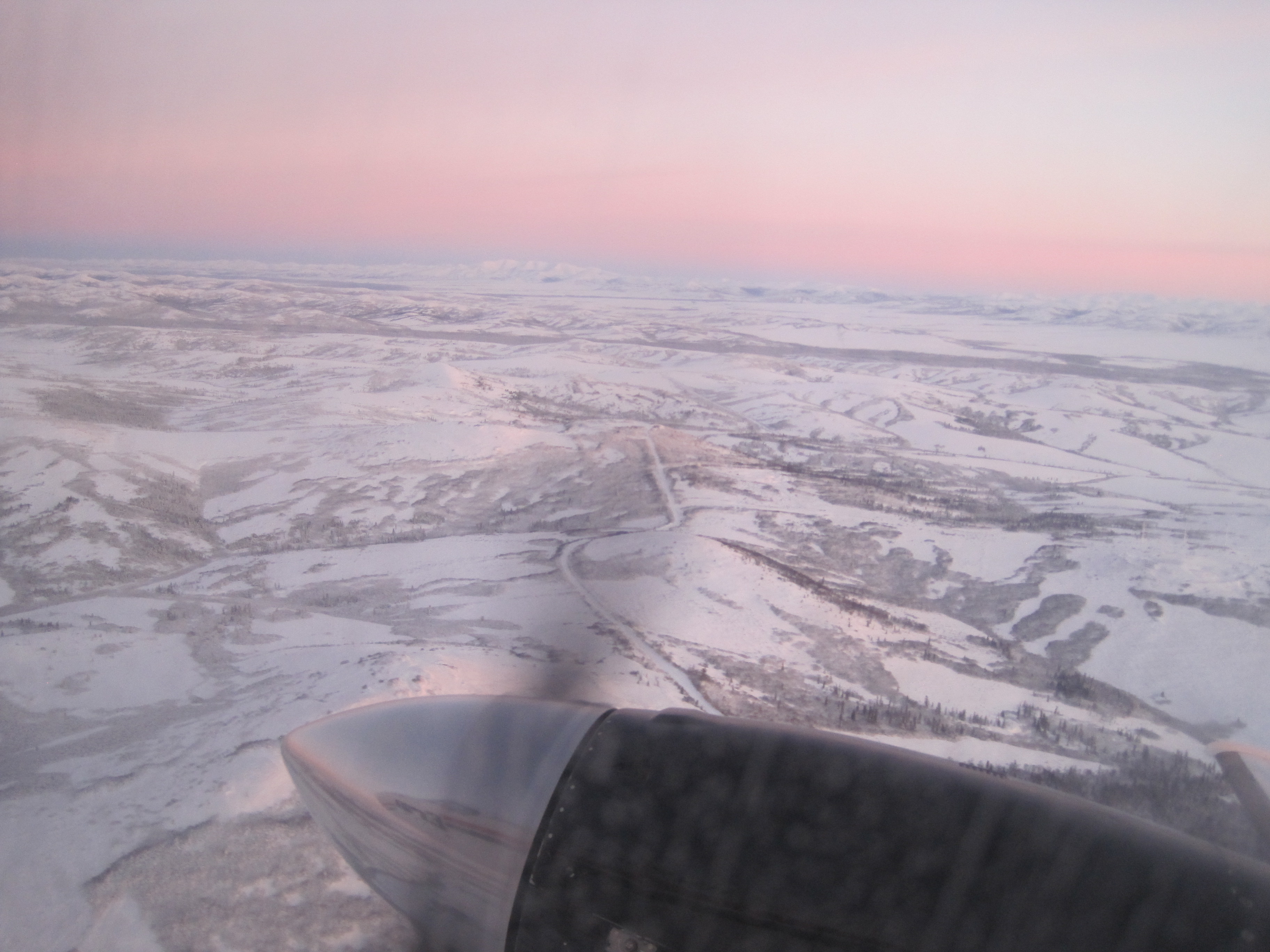 flying out of Unalakleet at sunset
