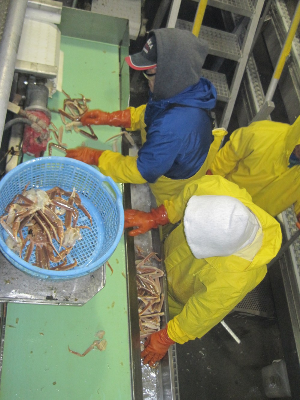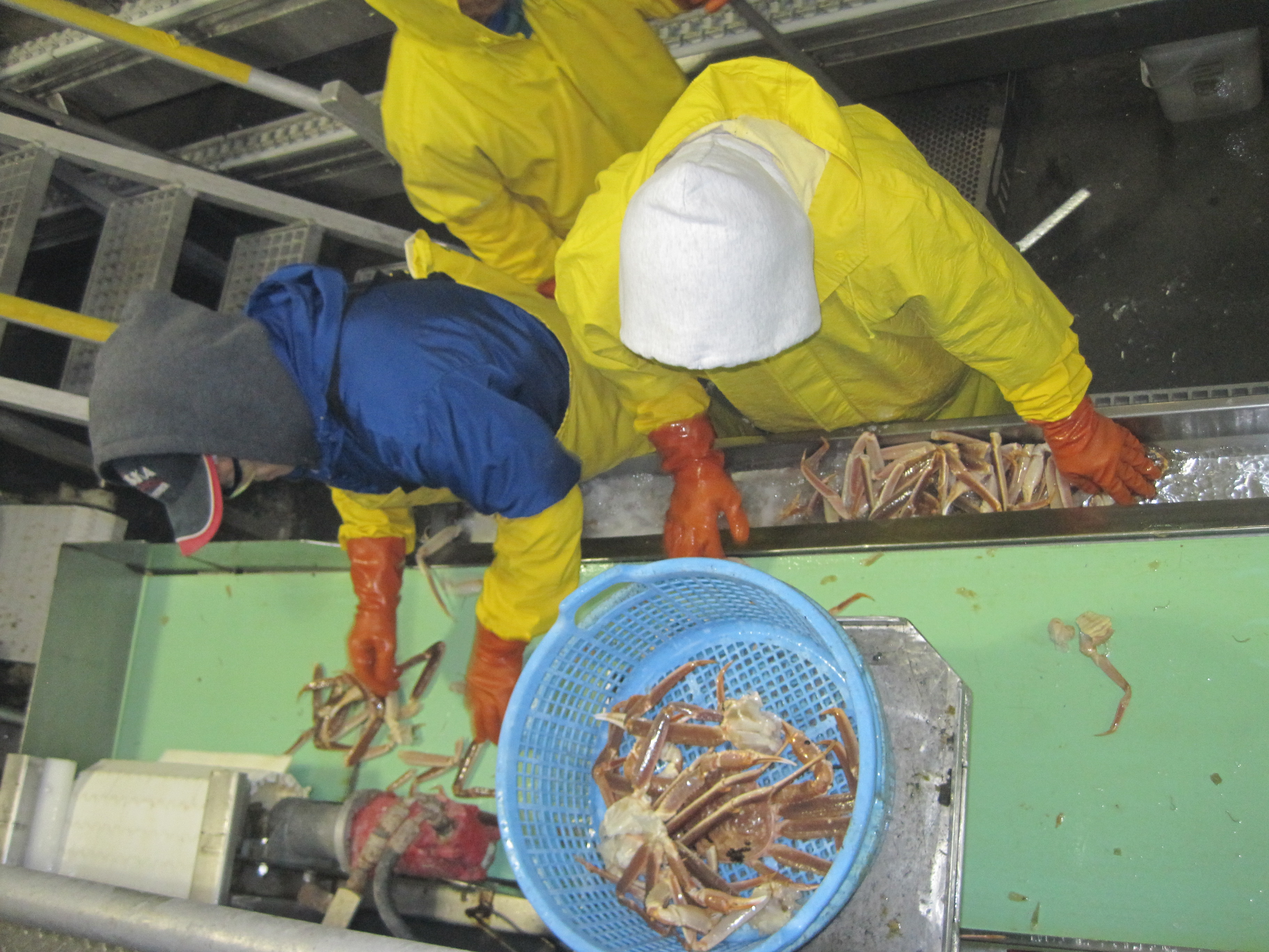 as we walked through the plant we could see workers sorting the crab